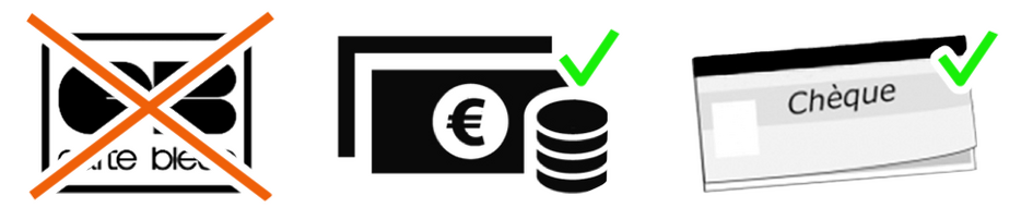 Moyens de paiement acceptés dans notre établissement : chèque ou espèce.
